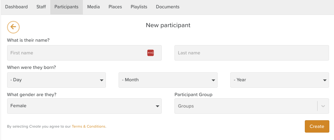 Once saved, you will be taken directly to the new participant’s profile, where you can continue adding information such as care plans, medical info, notes, and forms.