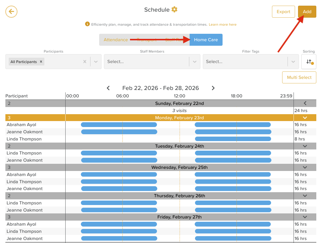 Steps to Add a Home Care Schedule: