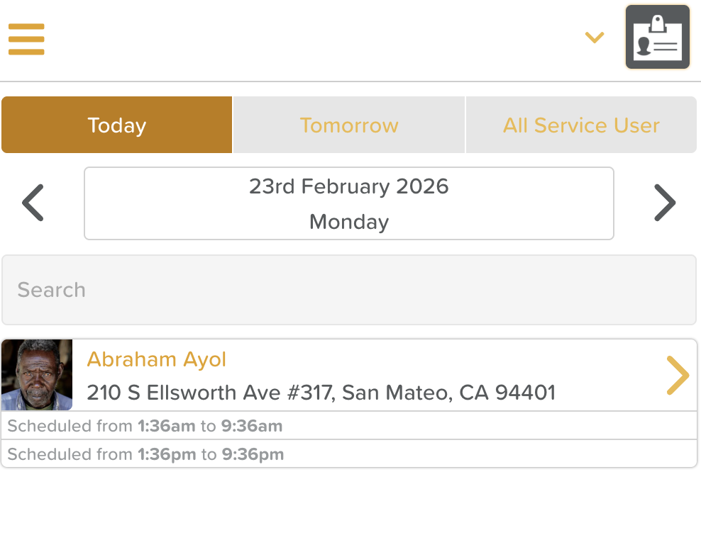 On the main dashboard of the Home Care App, Staff can see a list of their scheduled visits.