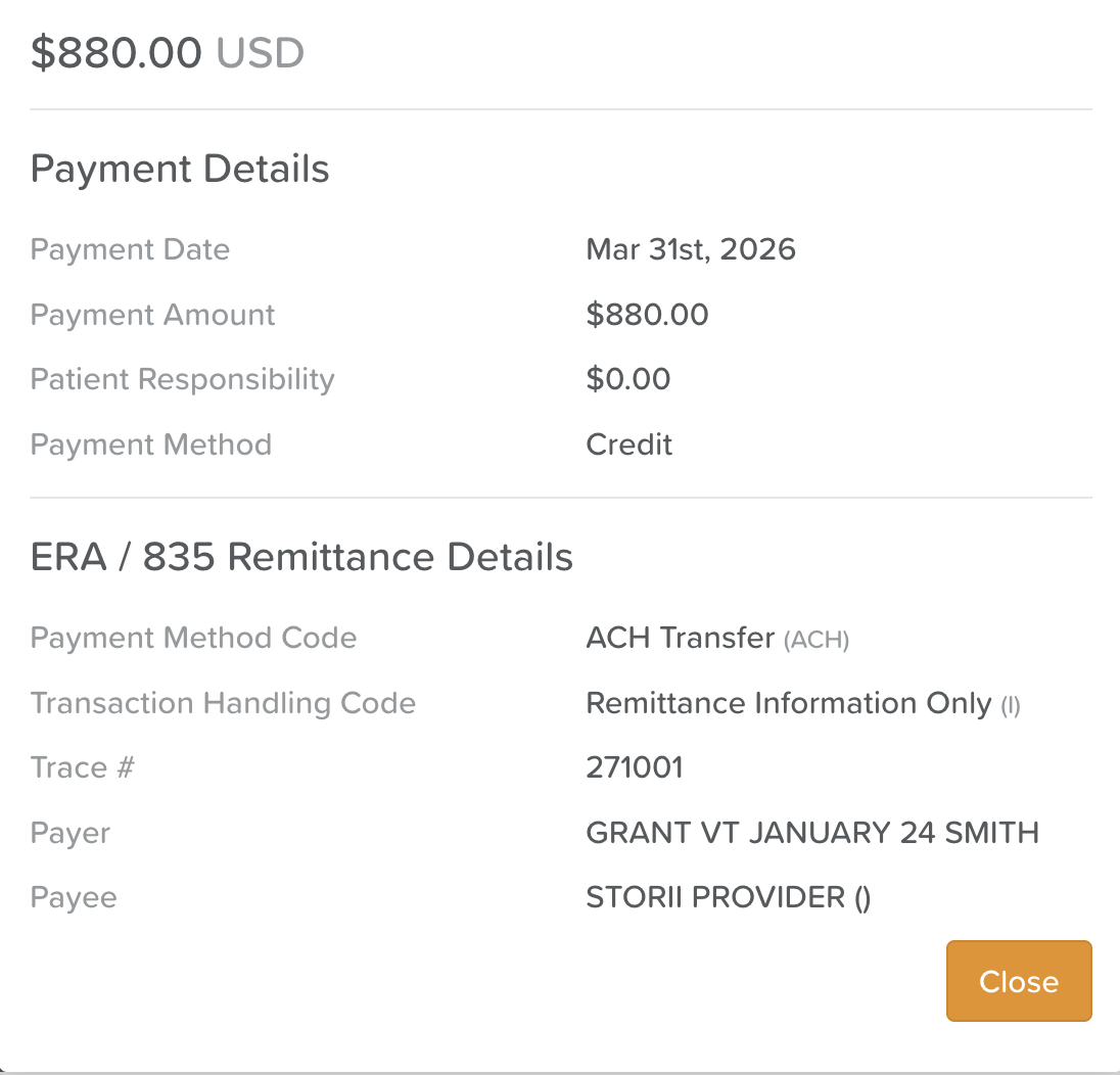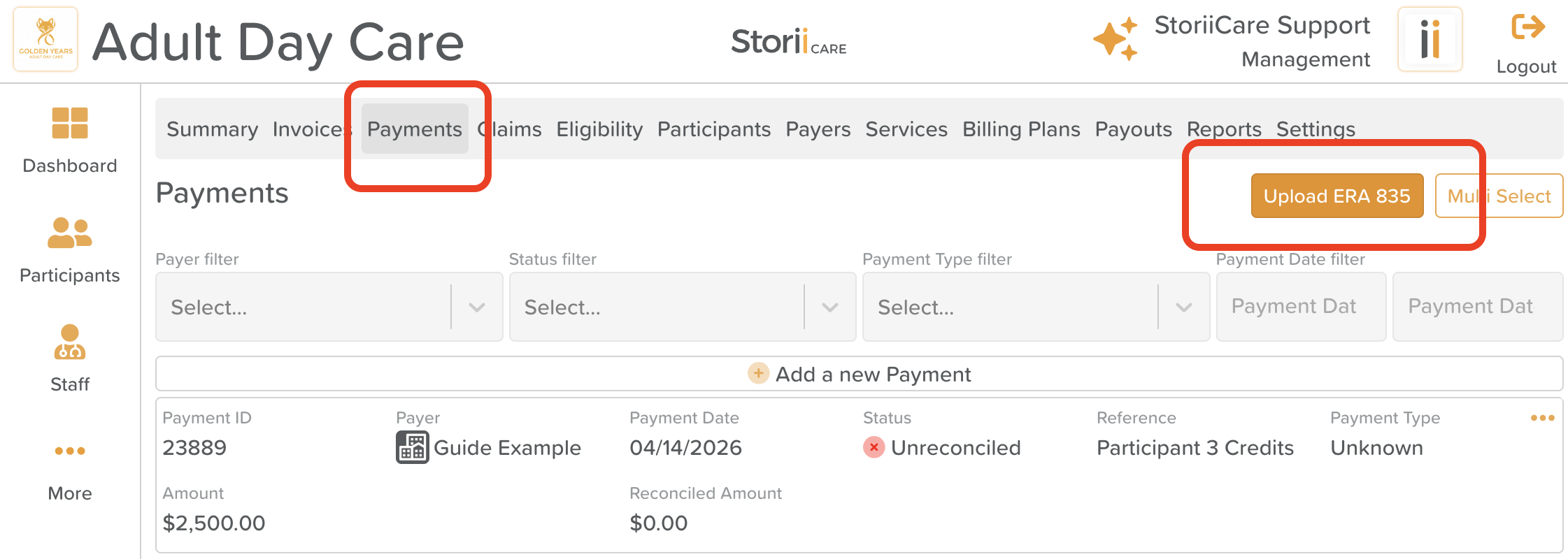 Managing billing and remittance has just become a lot easier. StoriiCare now supports the uploading of 835 Electronic Remittance Advice (ERA) files, allowing your billing team to reconcile insurance payments directly within the platform. If you are using our connected clearinghouse partner Stedi, no manual upload is required - claims will be auto-reconciled via our API connection!