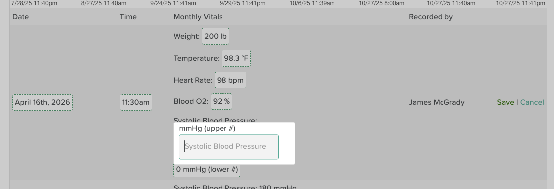Rather than clicking into each Vital Sign chart, users can group the Vital Signs they record on a daily, weekly, or monthly basis and enter all data points at once. This guide will walk you through how to set up your custom Vital Signs Group.