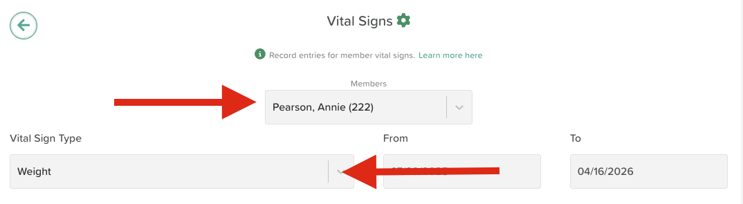 Select your desired Vital Sign from the Vital Sign Type dropdown menu