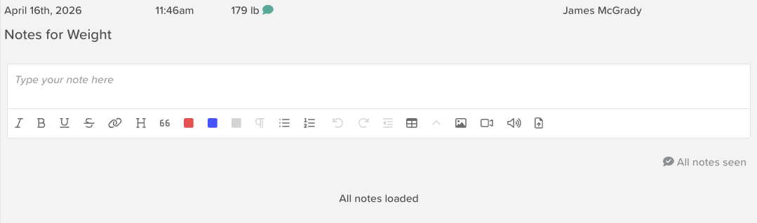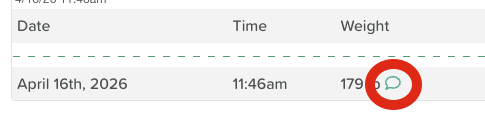 Once a Vital Sign entry is added, users can click on the message bubble icon to enter a note. This is ideal for explaining an outlier, indicating if a caregiver was notified of a concerning reading, etc.