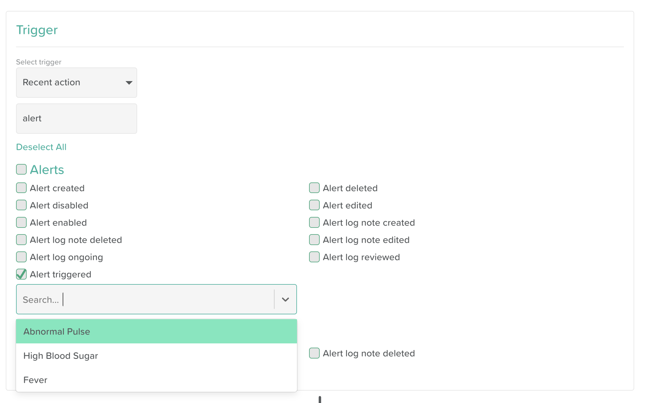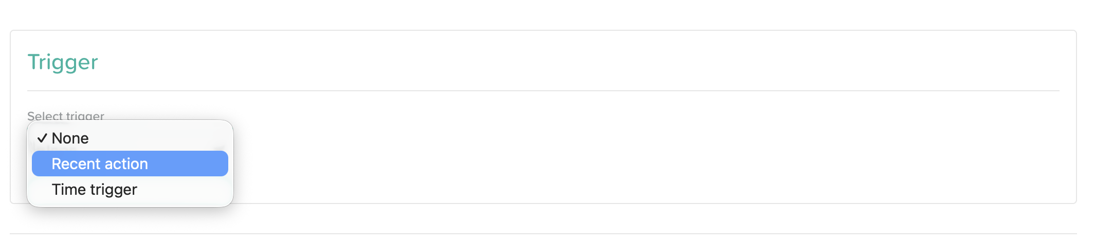 Click on the Select Trigger dropdown menu and choose Recent Action