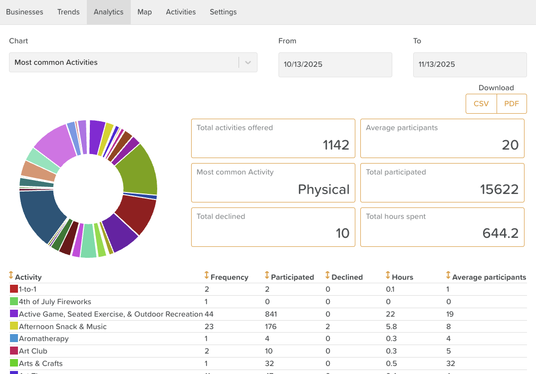 The Trends section allows you to view numerical data across multiple businesses at once.