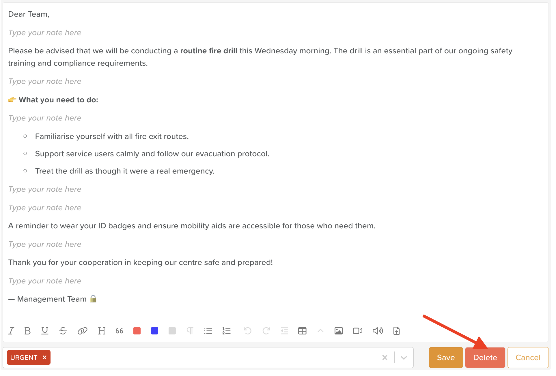 Use formatting and headings to improve readability.Attach files (e.g., schedules, policy documents, event flyers) when helpful.