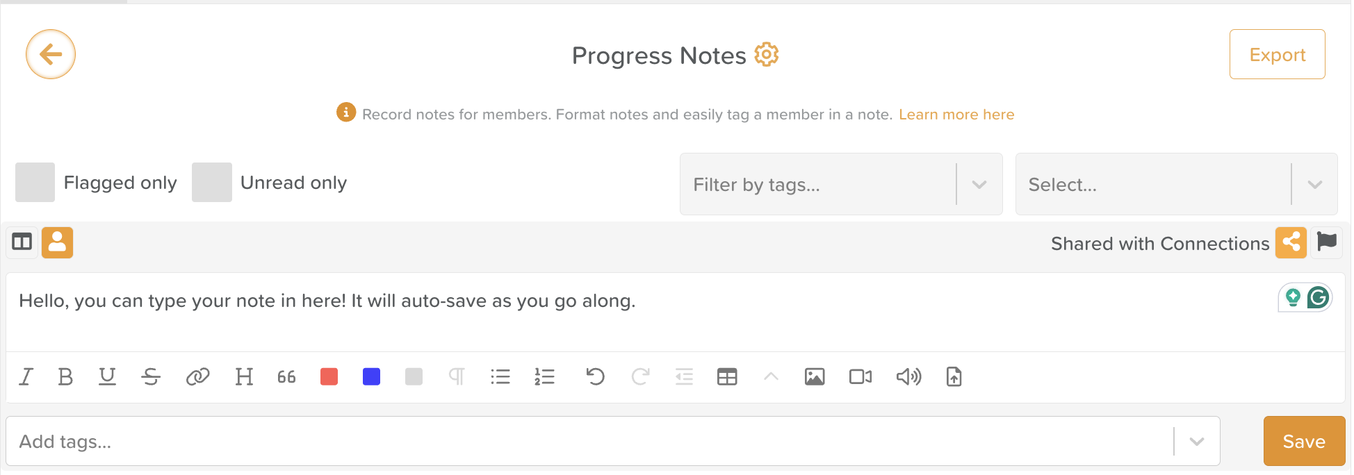 Progress Notes includes an automatic save feature to protect your work. If you begin typing a note and get interrupted—whether you’re pulled away or lose internet connection—your draft will be saved so you can resume exactly where you left off.