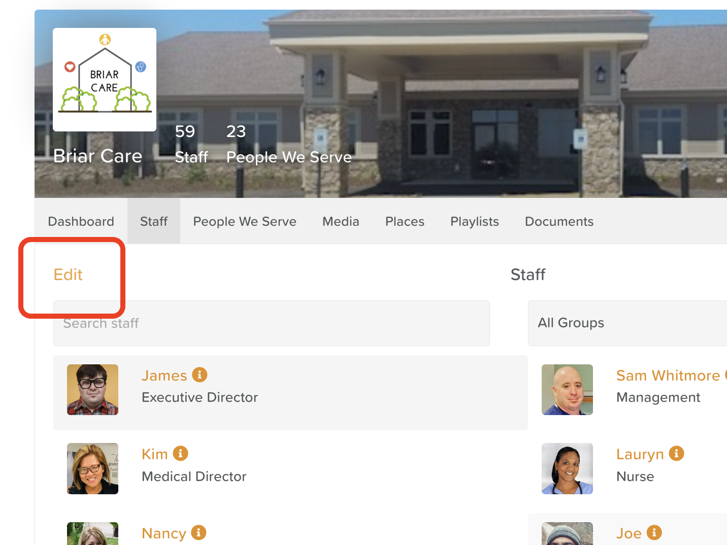 From your StoriiCare dashboard, click on the Staff tab in the main navigation bar.