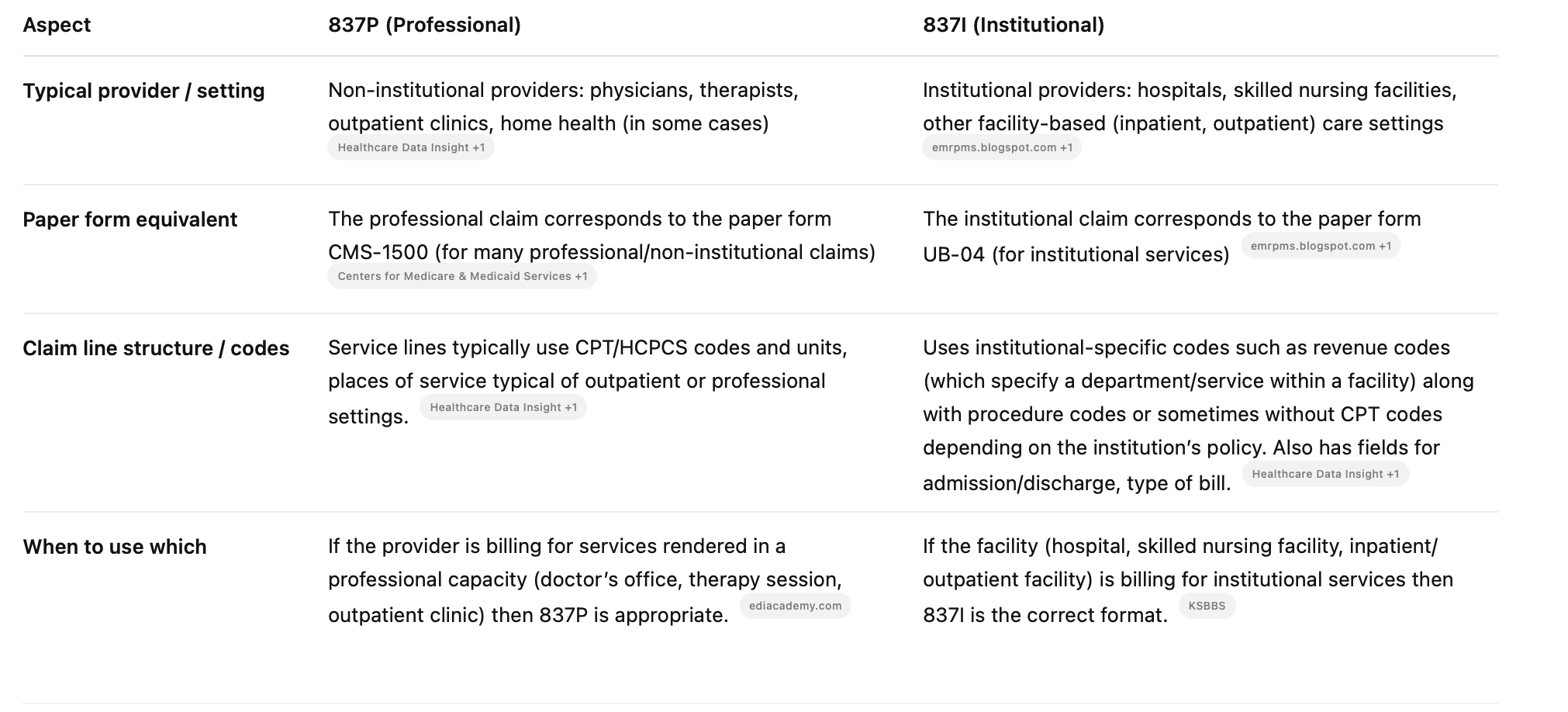 837P (Professional) — used for professional services (e.g., physicians, outpatient clinics, non-institutional providers)