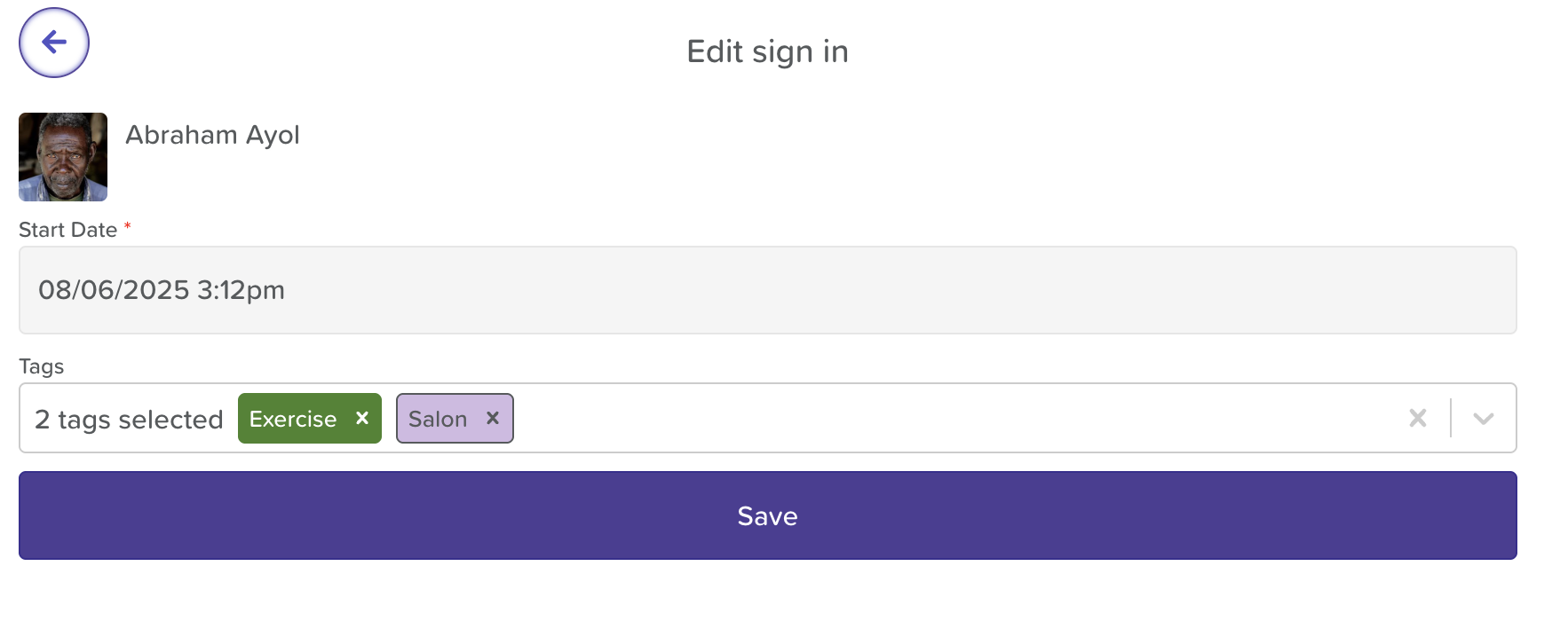 Please note, you cannot edit or remove a tag while the user is actively signed-in. The tag must be edited or removed once they have signed-out (or been marked as absent) and the log is generated.