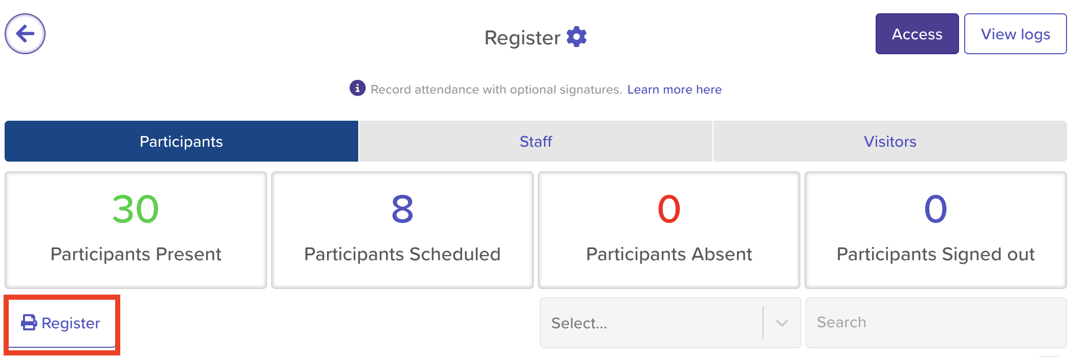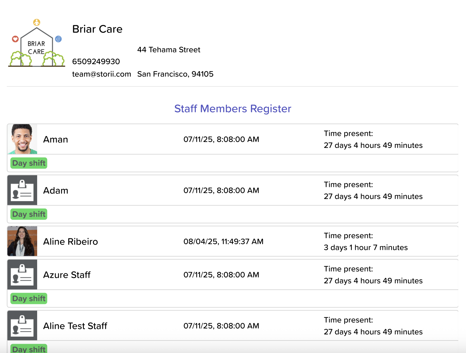 Need a physical copy of who is currently signed in? StoriiCare makes it easy to print an active Register for participants, staff, or visitors for your next fire drill or audit.