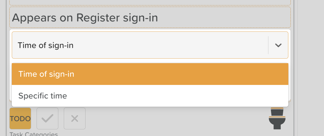 Time – Enter a specific time or a To/From time or set it to appear at Time of sign in.