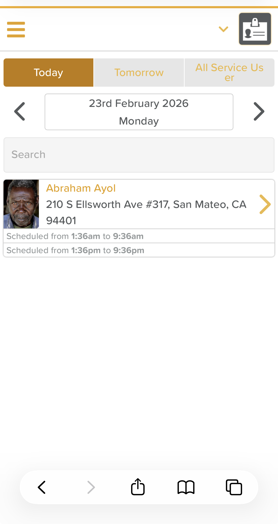 Once signed in, you’ll see a list of clients you're scheduled to visit that day.