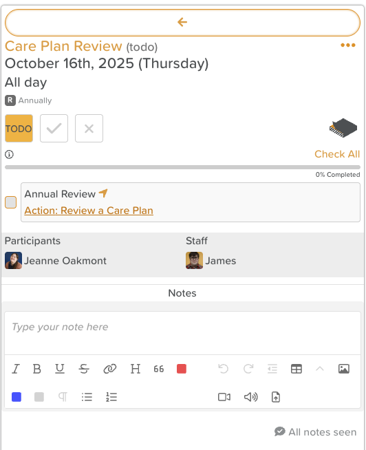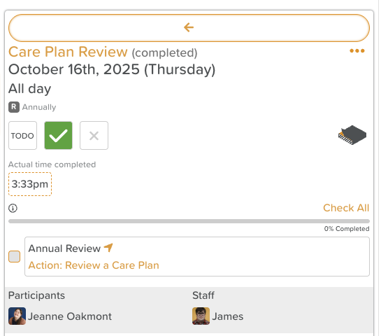 Regular Care Plan reviews are an important part of maintaining accurate, up-to-date records of each participant’s needs, goals, and progress. StoriiCare offers flexible tools for scheduling, tracking, and completing Care Plan reviews using the Tasks feature.