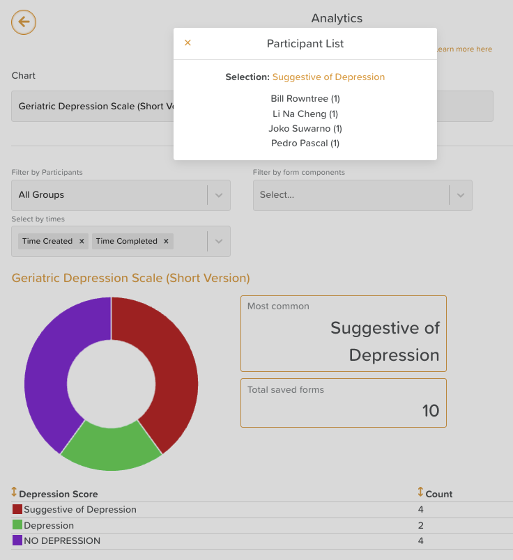Any form component with “Include in Analytics” checked in the Form Builder will populate here once responses have been collected.