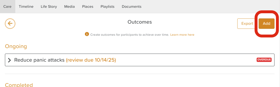 Goals (also referred to as Outcomes, Objectives, Key Performance Indicators, Responses, or Actions, depending on your organization’s terminology) help track a participant’s progress toward meaningful achievements. StoriiCare makes it easy to create, monitor, and review these goals over time.