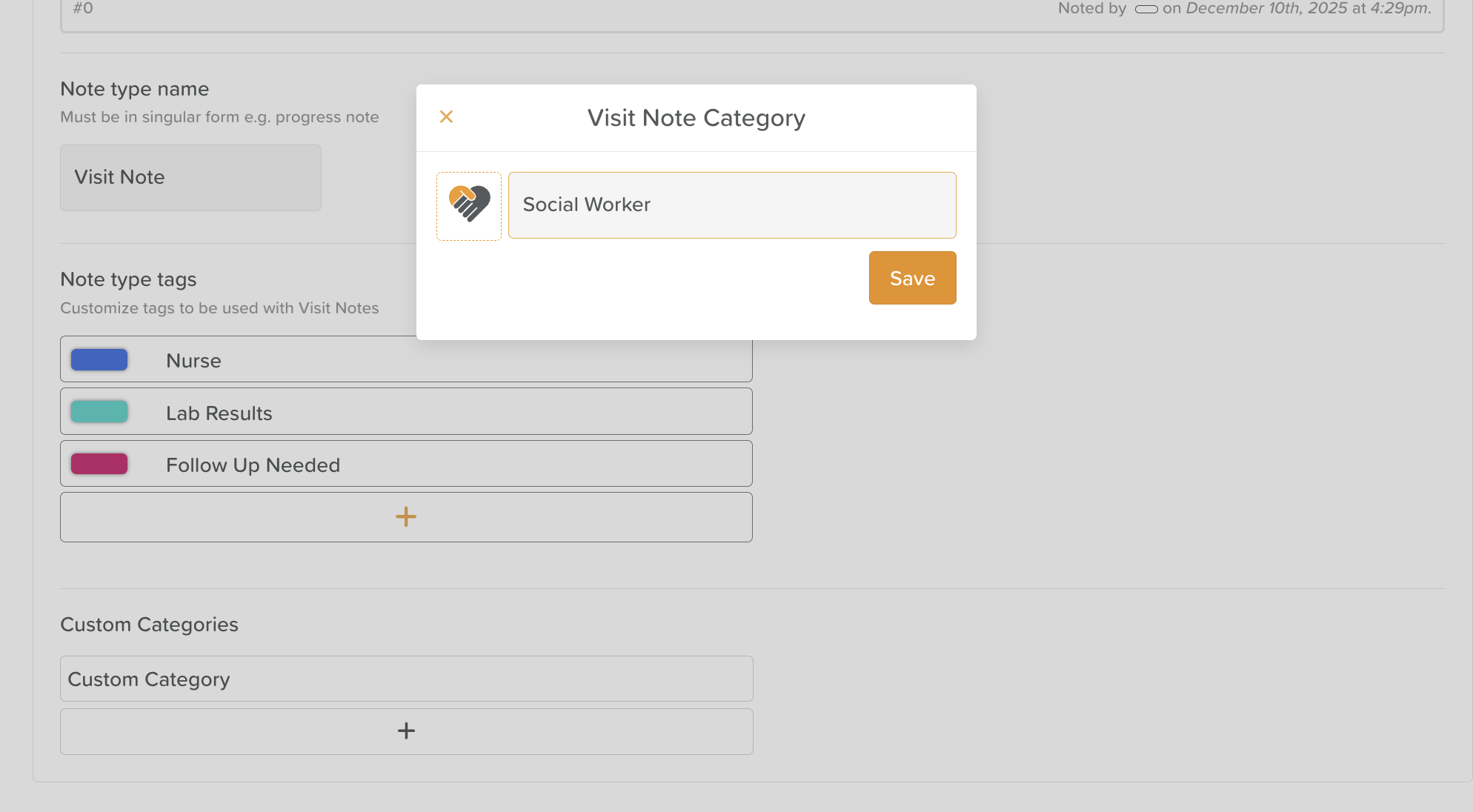 Your custom category will immediately be visible from the Visit Notes page across all participant profiles.