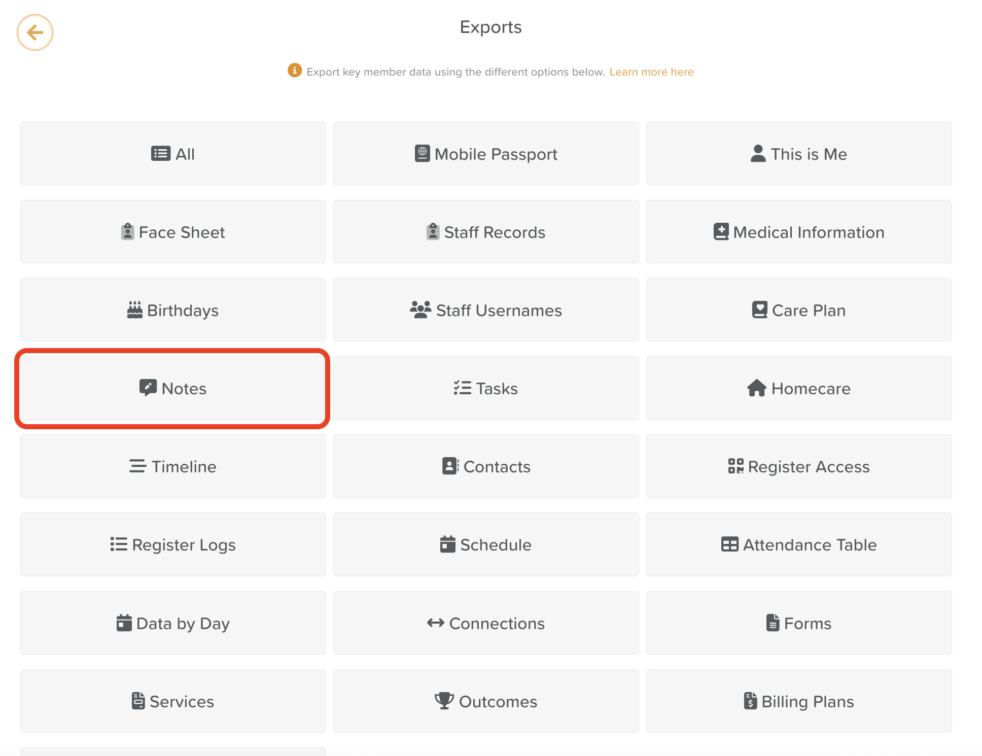 From the Export by type dropdown, select Visit Notes (or whatever it is called on your system).