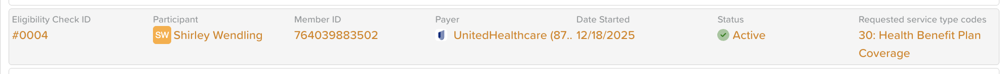 Active ✅ – The eligibility check was successful and coverage details are available.