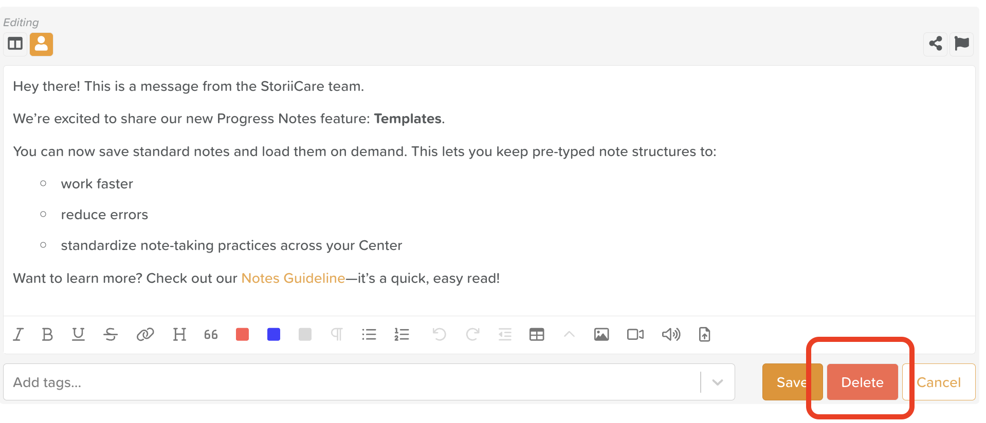 Once deleted, the notice is permanently removed from StoriiCare and cannot be recovered. Only delete a notice when you are certain it is no longer needed.